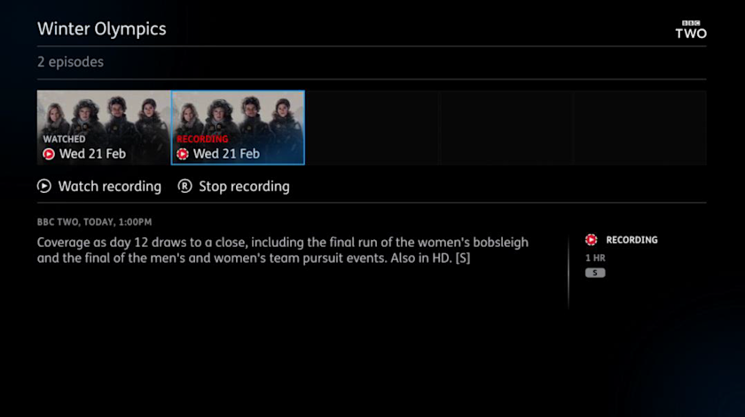 It's now easier to pick up where you left of in a series. When you open a series recording you will land on the most relevant episode.